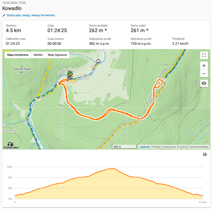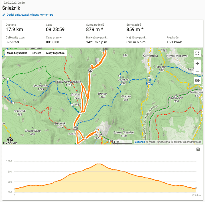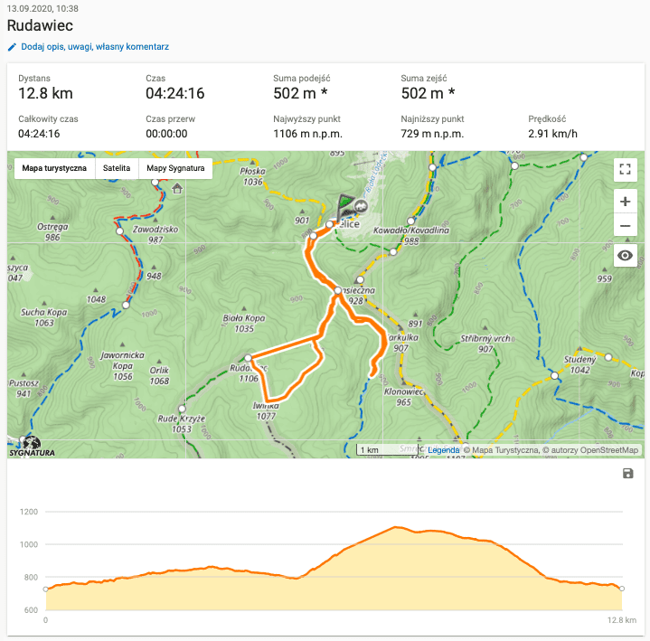 Podczas naszego „szczytowania” na wierzchołku góry w trakcie budowy była drewniana wieża widokowa. Zapowiada się naprawdę imponująco dlatego nie możemy doczekać się kolejnego wejścia na Orlicę, aby nacieszyć oczy rozpościerającymi się z niej widokami. Droga na szczyt i z powrotem wynosiła ponad 4 km w fantastycznej scenerii górskiej.