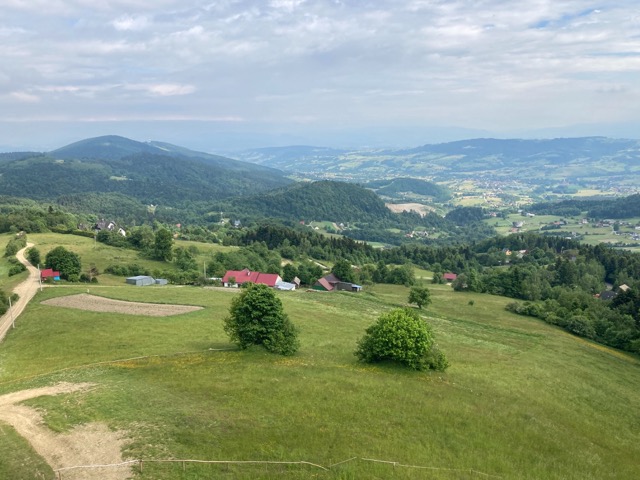 Jaworz leży na trasie Głównego Szlaku Beskidu Wyspowego – patrząc na te „wyspy” wyłaniające się z dolin, obiecaliśmy sobie, że może kiedyś zmierzymy się z całym tym dystansem. Tymczasem jednak cieszyliśmy się chwilą. W drodze powrotnej nie mogliśmy odmówić sobie wejścia na drewnianą wieżę widokową. Panorama, która się z niej rozpościera, to kwintesencja tego regionu – łagodne grzbiety, mozaika pól i lasów, a wszystko to skąpane w czerwcowym słońcu.