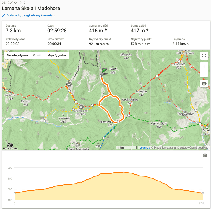Rezerwacja noclegu w Królówce w Grzechyni, urlop (sam weekend to za mało, więc wydłużyliśmy go o 2 dni), przemyślane pakowanie i w drogę. W środę po pracy wyjechaliśmy a w czwartek 22 grudnia 2022 byliśmy już w trójkę na szlaku prowadzącym na Jałowiec. Tym samym, którym pół roku wcześniej wchodziliśmy zdobywając Diadem Gór Polski.