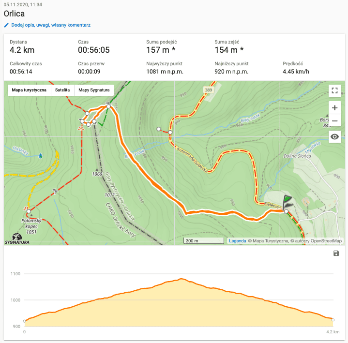Podczas naszego „szczytowania” na wierzchołku góry w trakcie budowy była drewniana wieża widokowa. Zapowiada się naprawdę imponująco dlatego nie możemy doczekać się kolejnego wejścia na Orlicę, aby nacieszyć oczy rozpościerającymi się z niej widokami. Droga na szczyt i z powrotem wynosiła ponad 4 km w fantastycznej scenerii górskiej.